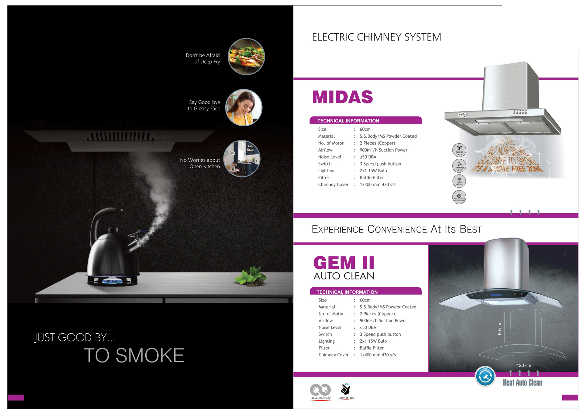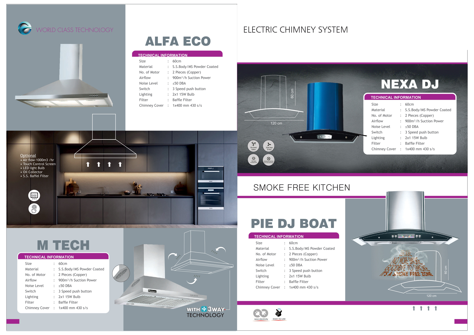 For a smoke-free and healthy cooking experience. A unique blend of futuristic design and cutting-edge technology, these chimneys let you cook minus the fumes. To complement your classy kitchen interiors, We are crafted using superior materials and are designed keeping modern contemporary aesthetics in mind. For best in class ventilation and robust built. Based on your kitchen space, you can choose from Island Hoods, Designer Hoods, Decorative Hoods, Auto Clean Hoods, & straight Line Hoods.