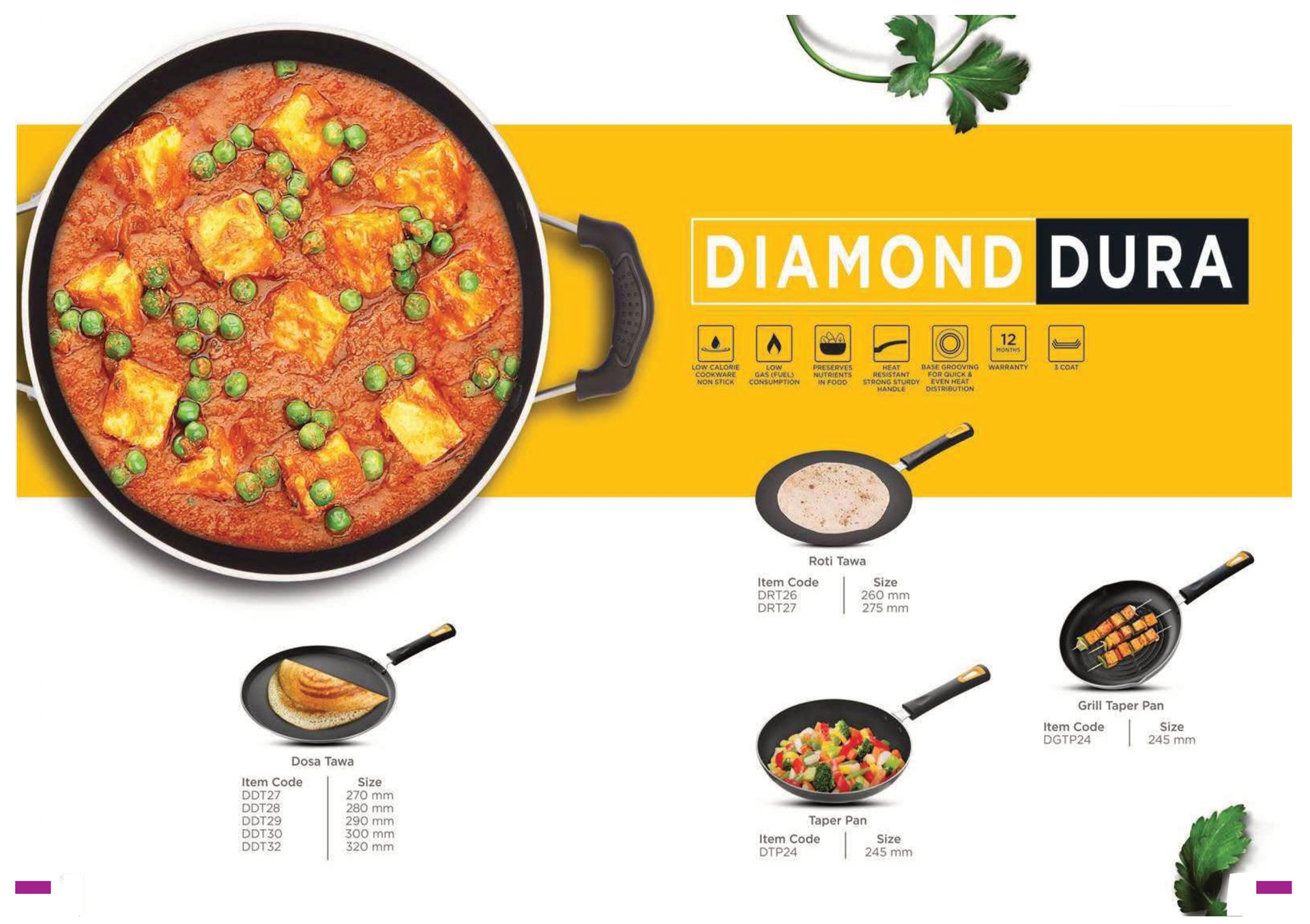 Non-stick cookware is a common application, where the non-stick coating allows food to brown without sticking to the pan. Non-stick is often used to refer to surfaces coated with polytetrafluoroethylene (PTFE), a well-known brand of which is Teflon.TheNon-Stick is healthy &Offers Easy Cooking With Less Oil. Even Heat Distribution, Non-stick Coating , Highly Durable, Easy To Clean Comfortable Bakelite Handles Stay Cool During Use Premium Aluminium Material For Superior Heat Distribution And Dual Non-stick Coating To Deliver Outstanding Performance EachTime Multipurpose Use For Home, Kitchen Or Restaurant