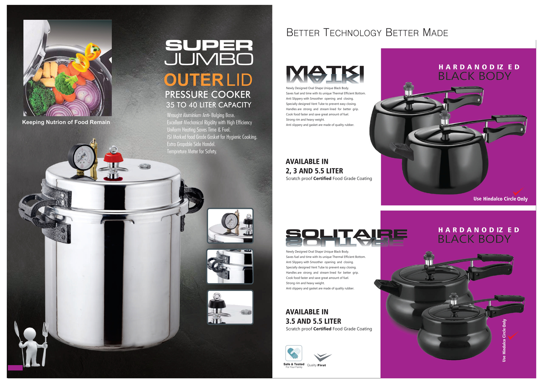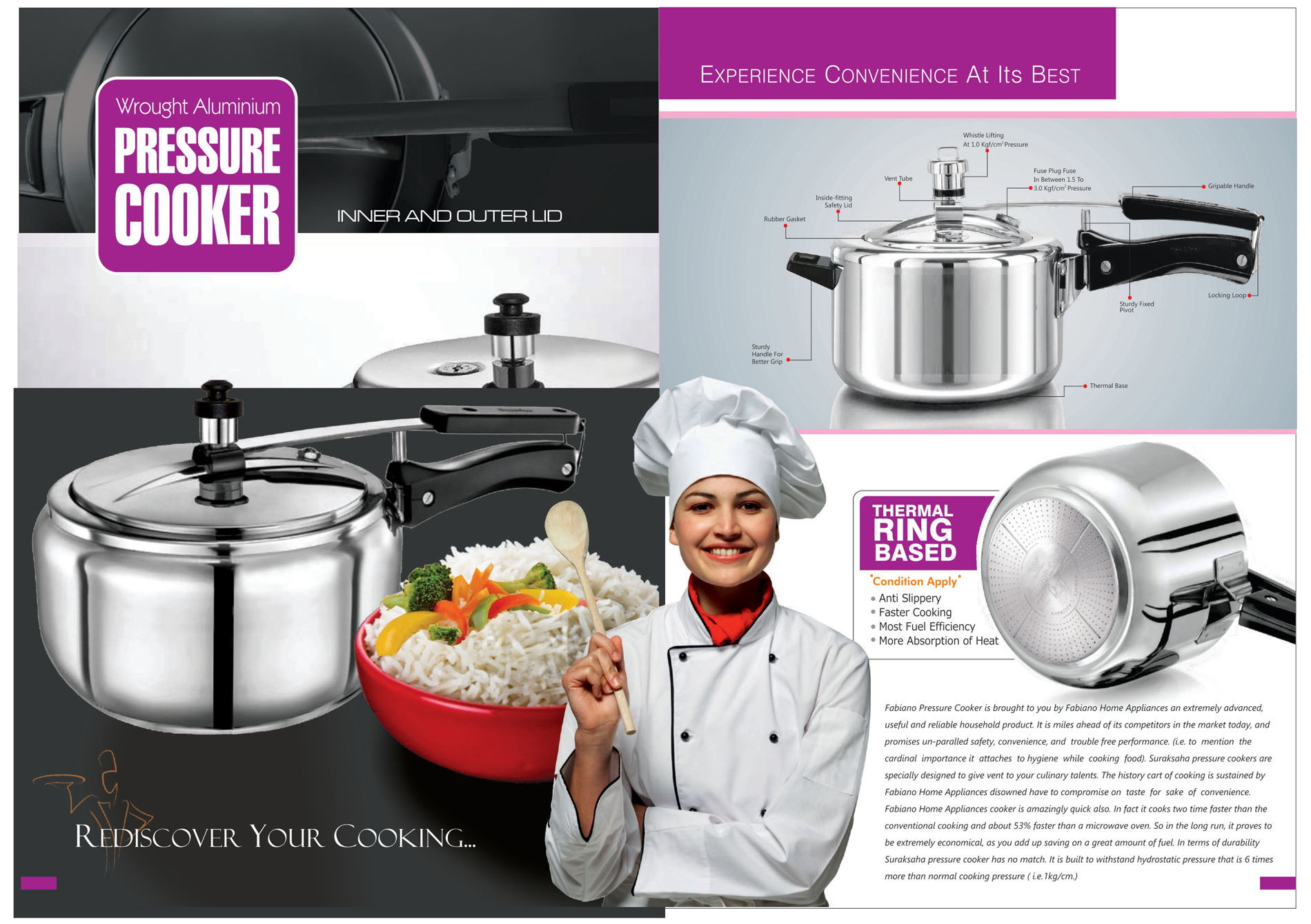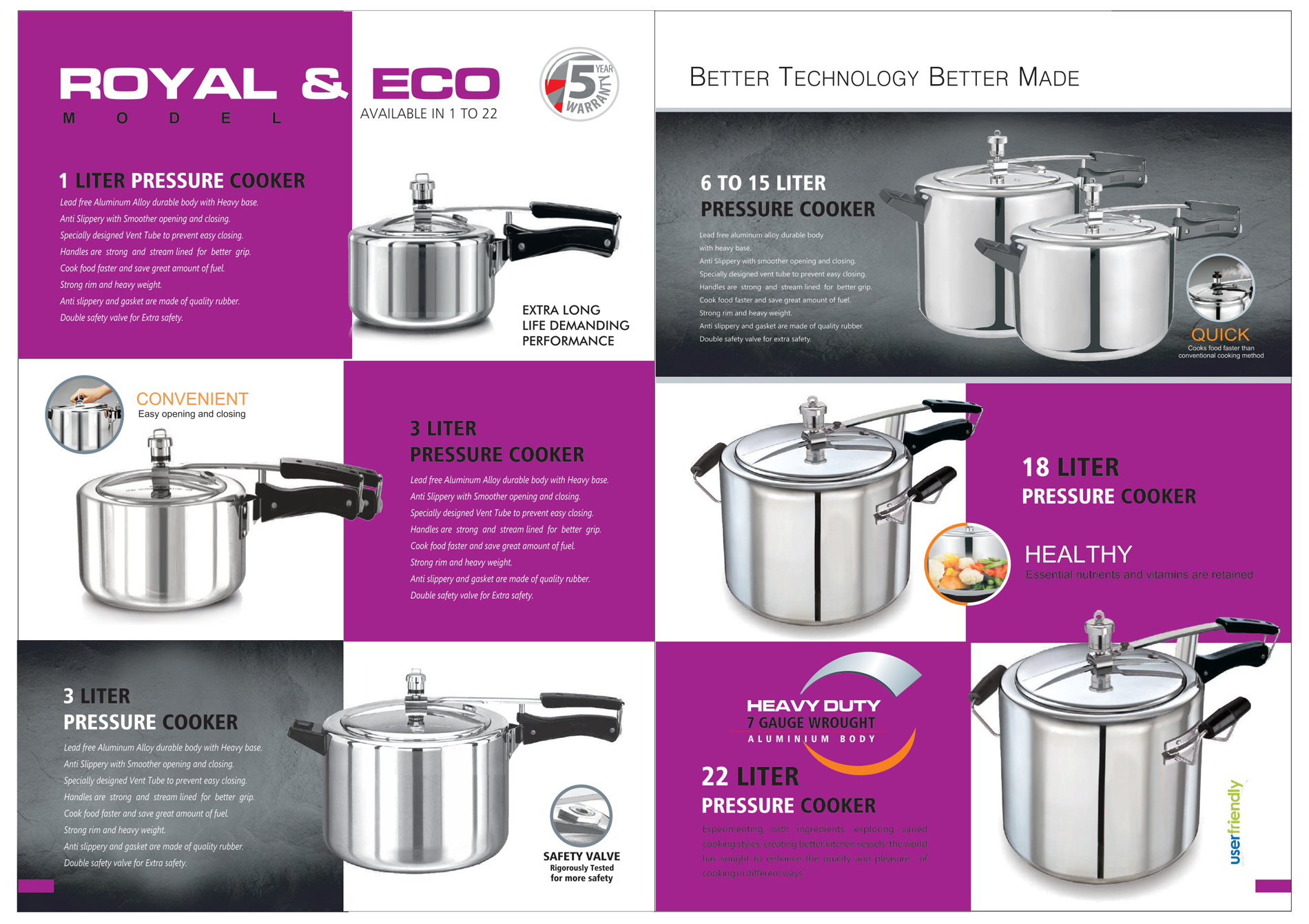 Pressure cooking helps retain the quality of the foods you cook, by preparing them quickly and with very little water. Vegetables remain crisp, colourful and retain the texture and flavour that make them so delicious in the first place . Pressure cooker helps in Saving Time & Energy.